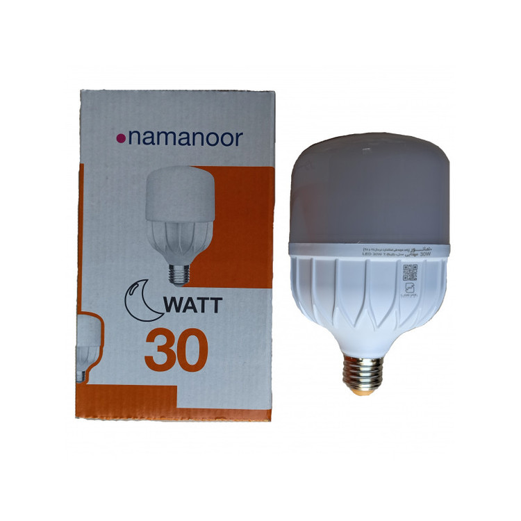 لامپ 30 وات استوانه ای ال ای دی نمانور مدل استوانه پایه E27، محصولی فوق کم مصرف با رده انرژی A+ است. اندازه سرپیچ این محصول E27 (سرپیچ معمولی) است و مناسب مصارف خانگی، اداری، روشنایی کارگاه، مغازه و متراژهای متوسط به بالا است. در ساخت این محصول از تکنولوژی LED SMD استفاده شده و زاویه تابش پرتو آن 270 درجه است. محصولات نمانور ساخت ایران و دارای علامت استاندارد هستند. نمانور با طول عمر تقریبی 20000 ساعت در دو رنگ نور آفتابی و مهتابی قابل سفارش است. بهرهوری لامپ این لامپ بسیار بالا، فاقد اثر حرارتی و اشعههای مضر برای سلامتی و سازگار با محیط زیست است.