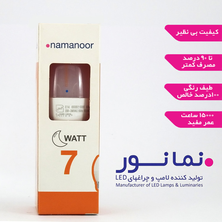 لامپ ال ای دی نمانور مدل شمعی با ردۀ مصرف انرژی A+ و نوردهی بسیار مناسب یکی از بهترین گزینه ها برای نصب روی انواع لوستر و چراغهای تزیینی است. این لامپ با کیفیت که دارای علامت استاندارد ایران است، دارای زاویه تابش 180 درجه ای و عمر مفید 15 هزار ساعتی است که در نوع خود فوق العاده محسوب می شود. همچنین، در کنار توان 7 واتی، اندازۀ فیزیکی این لامپ شمعی نیز طبق استانداردهای جهانی بوده و تمام این موارد لامپ ال ای دی نمانور مدل شمعی را تبدیل به یک انتخاب هوشمندانه برای مصرف کننده کرده است. از دیگر مشخصات اصلی این لامپ ال ای دی میتوان به عدم انتشار پرتوهای زیانآور ماورای بنفش (UV) و مادون قرمز، و همچنین تولید کمترین دیاکسیدکربن در مقایسه با لامپهای معمولی اشاره نمود. لامپ ال ای دی نمانور مدل شمعی میتواند روشنایی خوبی معادل یک لامپ 55 وات معمولی داشته باشد. از مشخصات بارز محصولات نمانور، میتوان به طول عمر بالا، مصرف انرژی پایین، و مناسب بودن برای محیط زیست (بدون هیچگونه مواد مضر و تولید کمترین گاز CO2)، و همچنین عدم انتشار هرگونه پرتو خطرناک اشاره نمود. برند نمانور یکی از خوشنام ترین و شناخته شده ترین برندهای ایرانی در زمینۀ تولید لامپهای ال ای دی است. این محصول فوق العاده دارای نشان ملی استاندارد به همراه شماره ثبت است.