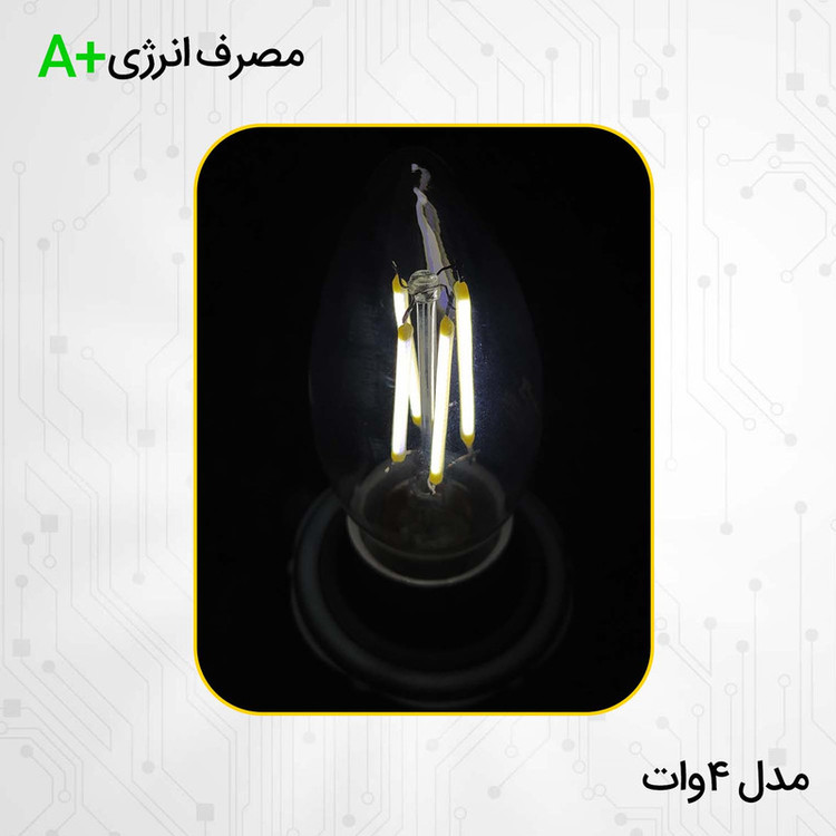 لامپ ال ای دی فیلامنتی مدل شمعی از شرکت هالی استار میباشد از مزایای خاص اون میشه به مصرف انرژی پایین (+A) و مقاوم بودن و نور سرد(فاقد اشعهی مادون قرمز) اشاره کرد نوع پایهی اون E14 است و طول عمری حدود 15 هزار ساعت داره این لامپ LED فاقد جیوه است و باعث آلودگی محیط نمیشود در طی زمان روشن ماندن گرمای تولیدی آن در مقایسه با سایر منابع روشنایی کمتر است توان این نوع لامپ ها 4 وات است اما مقدار واقعی آن کمتر است